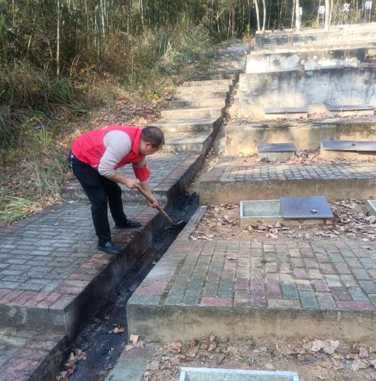 当日上午,在王胜海书记的带领下,村“两委”成员携带清洁工具,前往墓园。大家分工协作,对公墓区域的杂草进行清除,并捡拾散落的垃圾和祭祀残留物。经过数小时的共同努力,公墓环境焕然一新。