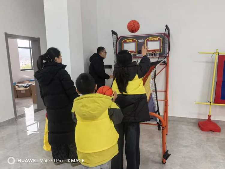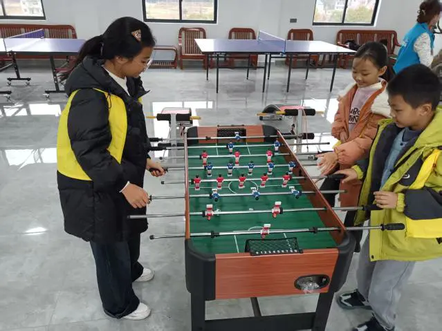 知识讲解结束后,活动进入了热闹的游戏互动环节。阳光驿站特别设置了丰富多样的趣味游戏项目。孩子们兴致勃勃地投入到投篮、桌面冰球、桌面台球、桌面足球等游戏中,充分体验运动的乐趣。这些游戏不仅锻炼了孩子们的手眼协调能力和反应能力,更在互动比拼中增进了彼此的友谊,现场欢声笑语不断,气氛热烈。